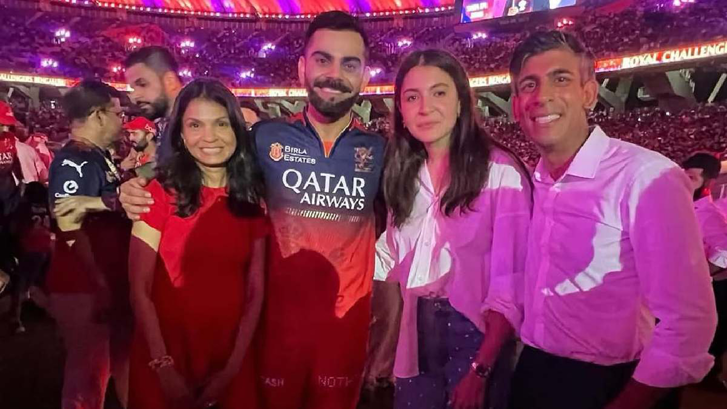 सुनक दाम्पत्याने आरसीबीच्या विजयानंतर विराट कोहली व त्याची पत्नी अनुष्का शर्मा या दोघांची भेट घेत त्यांचं अभिनंदन केलं. सुनक व कोहली दाम्पत्याचा फोटो समाजमाध्यमांवर व्हायरल होत आहे.