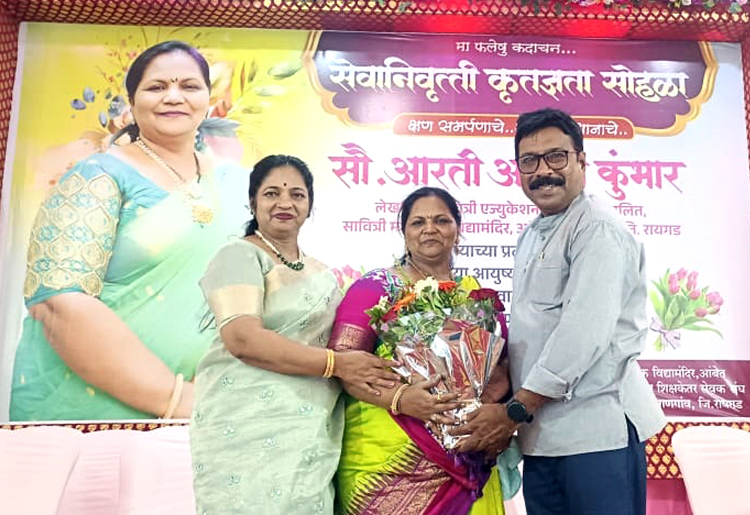 आरती कुंभार यांनी सावित्री माध्यमिक विद्यामंदिर आंबेत जिल्हा रायगड येथे ३५ वर्षाहून अधिक प्रामाणिकपणे सेवा केल्याने. शिक्षण क्षेत्रामध्ये एक वेगळा ठसा उमटविला आहे. शिक्षण क्षेत्रात सेवा बजवताना. शैक्षणिक क्षेत्रात शिक्षक व शिक्षकेतर कर्मचारी यांना सेवेमध्ये असताना येत असल्या अडचणी पाहून त्यांनी या संघटनेच्या माध्यमातून महाराष्ट्र राज्य शिक्षक शिक्षकेतर कर्मचारी संघटनेच्या महामंडळावर नेतृत्व करण्याची संधी त्यांना मिळाली आणि आपल्या कौशल्याचे व नेतृत्वाचे पैलू त्याने सिद्ध केले. तसेच अंगी असलेल्या सामाजिक बांधिलकीमुळे हिरकणी कन्या महिला मंडळ या माध्यमातून महिलांचे प्रबोधन व संघटन उत्तमरीत्या केल्याने या संघटनेस रायगड जिल्ह्यामध्ये मानाचे स्थान आहे. अशा या कर्तुत्वान व्यक्तिमत्त्वाचा सन्मान करताना अभिमान वाटतो, असे प्रतिपादन कार्यक्रमाचे अध्यक्ष व सावित्री विद्या मंदिरचे माजी मुख्याध्यापक लक्ष्मण यादव यांनी केले.