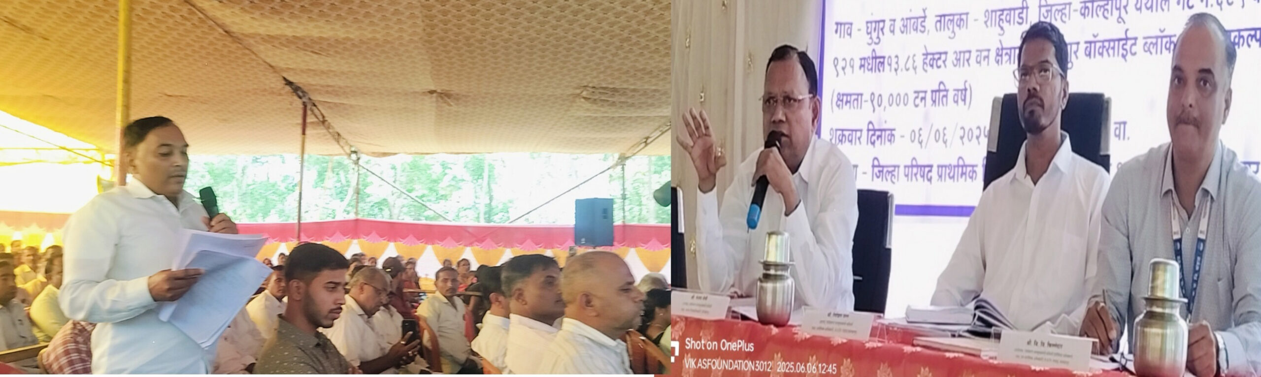 घुंगुर पैकी सावरेवाडी (ता.शाहूवाडी) येथे एकूण प्रकल्प क्षेत्र १३.८६ हेक्टर मध्ये प्रस्तावित नवीन सुरू होणाऱ्या बॉक्साइट खान उत्खनना बाबत आज पर्यावरण विषयक जाहीर लोक सुनावणी पार पडली. कोल्हापूर अप्पर जिल्हाधिकारी संजय तेली, प्रांत अधिकारी समीर शिंगटे, महाराष्ट्र प्रदूषण मंडळाचे प्रादेशिक अधिकारी निखिल घरत, उप प्रादेशिक अधिकारी व्ही.व्ही.किल्लेदार, शाहूवाडी पन्हाळा उपाधीक्षक आप्पासो पवार व शाहुवाडी पोलीस निरीक्षक विजय घेरडे यांच्या मार्गदर्शनाखाली पार पडली. सोबत सहाय्यक पोलीस निरीक्षक अभिजीत पाटील, पोलिस उप निरिक्षक अमित पाटील, प्रकाश कांबळे, बाबा किटे उपस्थित होते.