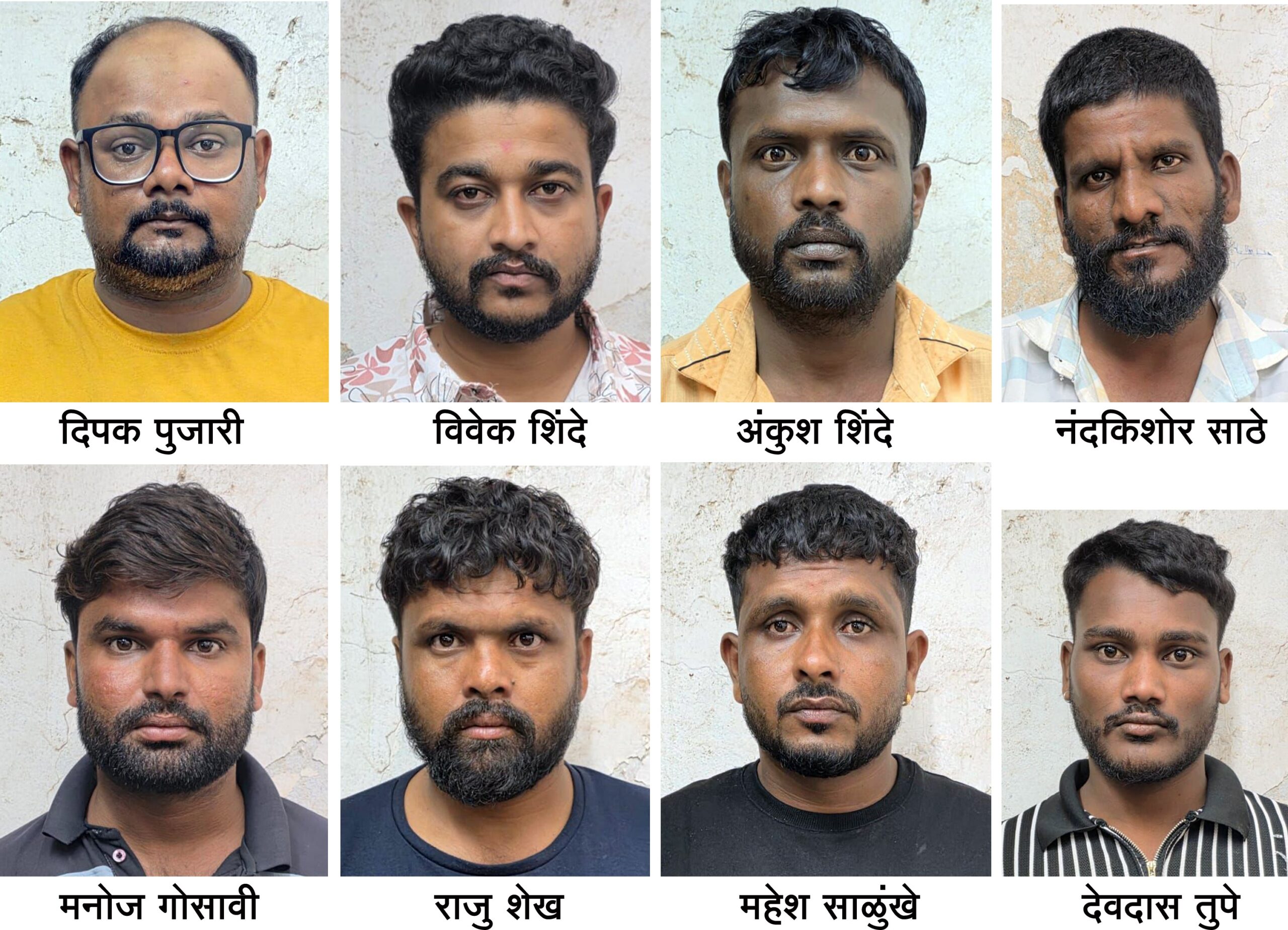 गांजा या अंमली पदार्थाची विक्री करणार्या व तो विकत घेणार्या इचलकरंजी, सांगली, सातारा व सोलापूर येथील 8 जणांच्या टोळीला स्थानिक गुन्हे अन्वेषण शाखा कोल्हापूरच्या पथकाने गजाआड केले आहे. या कारवाईत दिपक दत्तात्रय पुजारी (वय 37), विवेक मेघदुत शिंदे (वय 28 दोघे रा. इचलकरंजी), अंकुश प्रताप शिंदे (वय 30), नंदकिशोर भिकु साठे (वय 30 दोघे रा. बामणी ता. खानापुर जि. सांगली), मनोज मदन गोसावी (वय 29), राजु अमिन शेख (वय 30 दोघे रा. अकलुज, जि. सोलापुर), महेश जम्मु साळुंखे (वय 32 रा. खरसुंडी, ता. आटपाडी), देवदास महादेव तुपे (वय 21, रा. पालवण, जि. सातारा) यांना अटक करण्यात आली आहे. त्यांच्याकडून 41 किलो गांजा, 2 चारचाकी, 1 बुलेट, 10 मोबाईल असा 30 लाख रुपयांचा मुद्देमाल जप्त करण्यात आला आहे.
