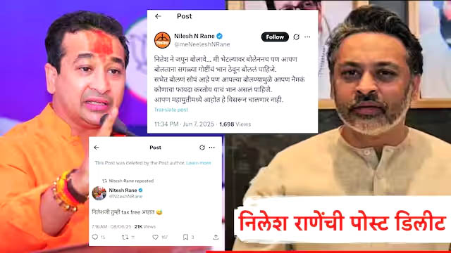 धाराशिव जिल्हा नियोजन समितीच्या निधीवाटपावरून भाजप आणि शिवसेना (शिंदे गट) यांच्यात वादाची ठिणगी पडली. भाजपचे आमदार राणाजगजीतसिंह पाटील यांनी केलेल्या तक्रारीनंतर समितीच्या कामांवर स्थगिती आणण्यात आली. या पार्श्वभूमीवर भाजप मंत्री नितेश राणे यांनी धाराशिव येथील पक्षाच्या मेळाव्यात बोलताना म्हटले, ”कोणी कितीही ताकद दाखवली, कोणी कसेही नाचले, तरी देशाचे पंतप्रधान नरेंद्र मोदीच राहतील आणि राज्याचे मुख्यमंत्री देवेंद्र फडणवीसच असतील. लक्षात ठेवा, मुख्यमंत्रीपदावर बसलेला नेता भाजपचाच आहे,” असे वक्तव्य केले होते. तर शिवसेनेचे कुडाळचे आमदार आणि नितेश राणे यांचे बंधू निलेश राणे यांनी त्यांना उद्देशून एक सल्ला देणारी पोस्ट केली होती. नितेश राणे यांनी त्या पोस्टला उत्तरही दिलं. काही वेळाने निलेश राणे यांनी ती पोस्ट हटवली. आता त्यांनी स्वत:च पोस्ट नेमकी का हटवली याबाबत स्पष्टीकरण दिले आहे.