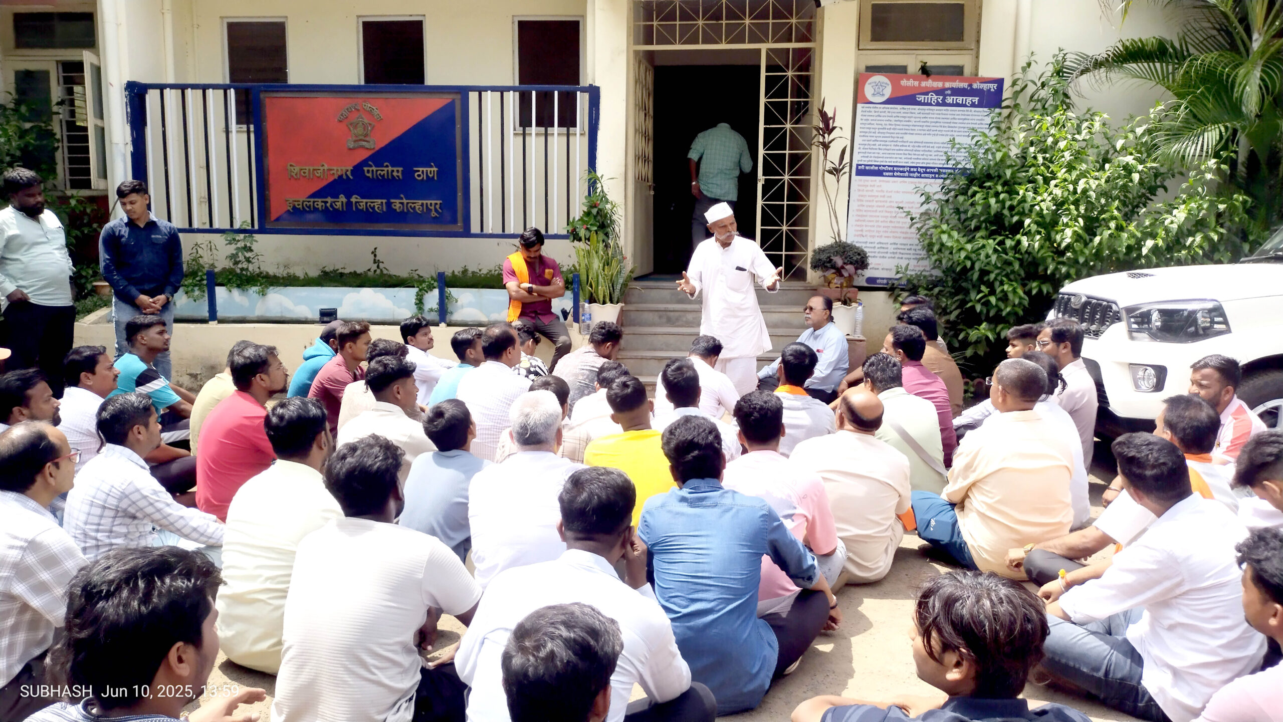 इचलकरंजीतील राजर्षी शाहु पुतळ्याजवळील सोन्यामारुती मंदिराच्या मागील परिसरात खाजगी इमारतीत प्रार्थनास्थळ सुरु आहे. त्याचा परिसरातील नागरीकांना त्रास होत असल्यानं नागरीकांनी हिंदुत्ववाद्यांकडं तक्रार केली होती. त्यामुळं हिंदुत्ववादी कार्यकर्त्यांनी पोलिसांना सोबत घेऊन रविवारी हे हिंदुत्ववादी कार्यकर्ते त्या ठिकाणी पोहचले असता धर्मांतरणाचा प्रकार निदर्शनास आला होता. यावेळी लोकांशी शाब्दीक वाद घातल्या प्रकरणी प्रार्थनास्थळाशी संबंधितांनी गुन्हा दाखल करण्याची मागणी करत सोमवारी पोलीस ठाणे आवारातच सामुहिक प्रार्थना केली होती. त्यानंतर पोलिसांनी शिवजी व्यास यांच्यासह ८ जणांवर रविवारी झालेल्या प्रकाराबाबत गुन्हा दाखल केला आहे. यामुळं संतप्त झालेल्या हिंदुत्ववादी कार्यकर्त्यांनी मंगळवारी दुपारी शिवाजीनगर पोलीस ठाण्यात एकत्र जमुन याचा जाब पोलीस उपअधिक्षक समिरसिंह साळवे यांना विचारला. यावेळी साळवे यांनी दिलेल्या उत्तराने हिंदुत्ववाद्याचे समाधान न झाल्याने पोलीस ठाणे आवारातच वादग्रस्त प्रार्थनास्थळाशी संबंधित व्यक्तिवर गुन्हे दाखल होत नाहीत तोपर्यंत आम्ही हटणार नाही, अशी भूमिका घेतली.