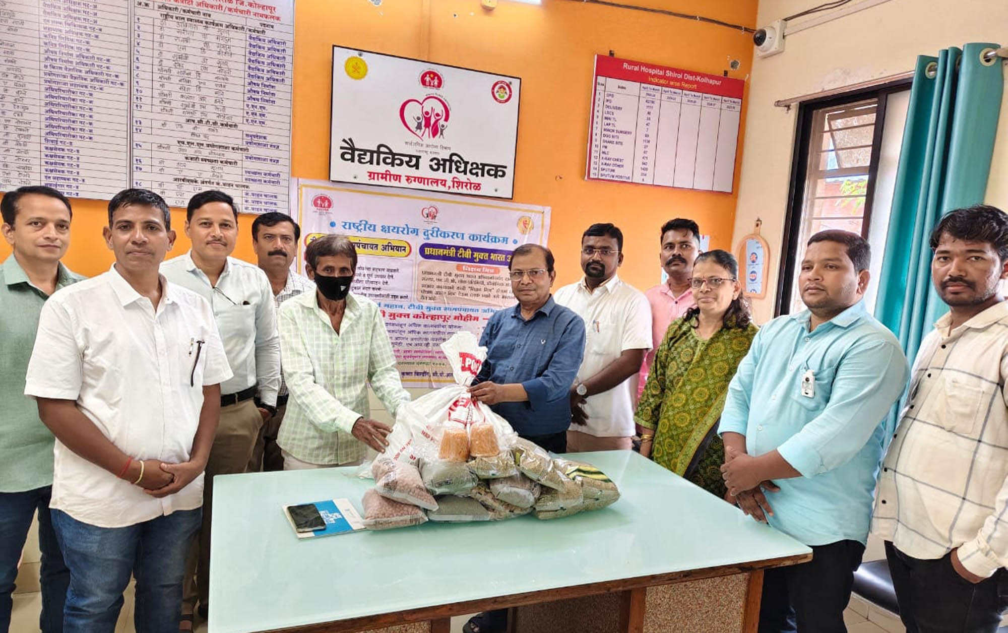 पंतप्रधान नरेंद्र मोदी यांचे टीबी मुक्त भारत या मोहिमेचा भाग म्हणून व टीबी रुग्णांना सकस आहार मिळावा. राष्ट्रीय क्षयरोग दुरीकरण कार्यक्रम अंतर्गत कार्यक्षेत्रातील टीबी रुग्णांना फूड किट मिळावेत. त्यासाठी दानशूर व्यक्तींनी सढळ हाताने मदत करावी, या जिल्हाधिकारी अमोल येडगे, जिल्हा क्षयरोग अधिकारी डॉ.हर्षला वेदक व तालुका आरोग्य अधिकारी डॉ.पांडुरंग खटावकर यांचे आवाहनास शिरोळ ग्रामीण रुग्णालयाच्या याप्रसंगी विजय कांबळे, यशोधन कुंनुरे, विश्वासराव डुबल, रमेश देवकाते, रणजित कांबळे, कृष्णा मस्के, संदीप तकडे, विजया अवसरे इत्यादी उपस्थित होते.
