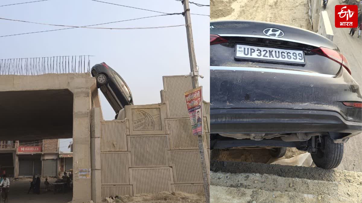अपूर्ण बांधकाम झालेल्या उड्डाणपुलावर अडकली कार!