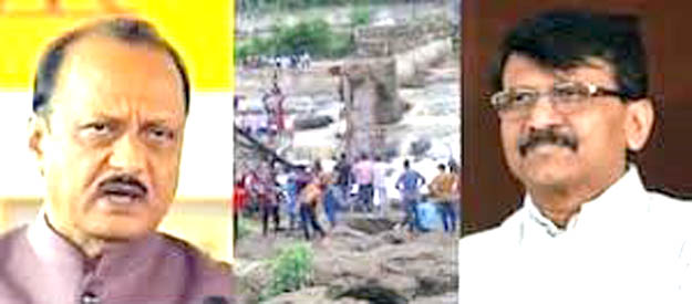 संजय राऊत पुढे म्हणाले की, काल जे बळी गेले त्याला जबाबदार कोण हे अजित दादा पवार यांनी सांगायला पाहिजे. काल तो पूल कोसळला, लोक वाहून गेले आणि मेले. अजित पवार कालपासून काही बोलण्याचे मी पाहिले नाही. एरवी मोठ्या मोठ्याने आणि तावातावाने ते बोलत असतात. त्यांची जबाबदारी नाही का? पालकमंत्री कुठे फिरत आहात? तुम्ही काय करत आहात? असा सवाल त्यांनी यावेळी उपस्थित केला.