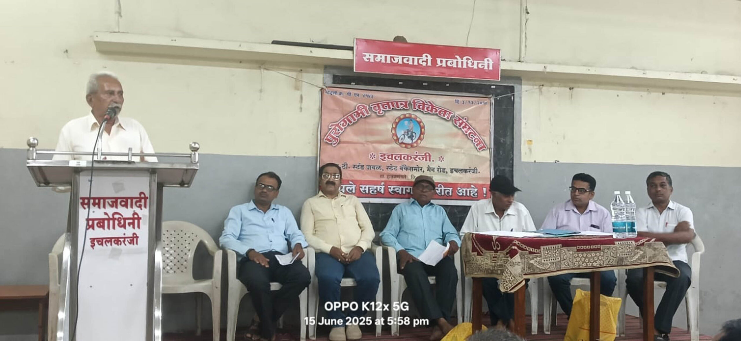 इचलकरंजी येथील पुरोगामी वृत्तपत्र विक्रेता संघटनेची वार्षिंक सर्वसाधरण सभा समाजवादी प्रबोधिनीच्या सभागृहात खेळीमेळीच्या वातावरणात संपन्न झाली सभेच्या अध्यक्षस्थानी शिवगोंडा खोत होते.