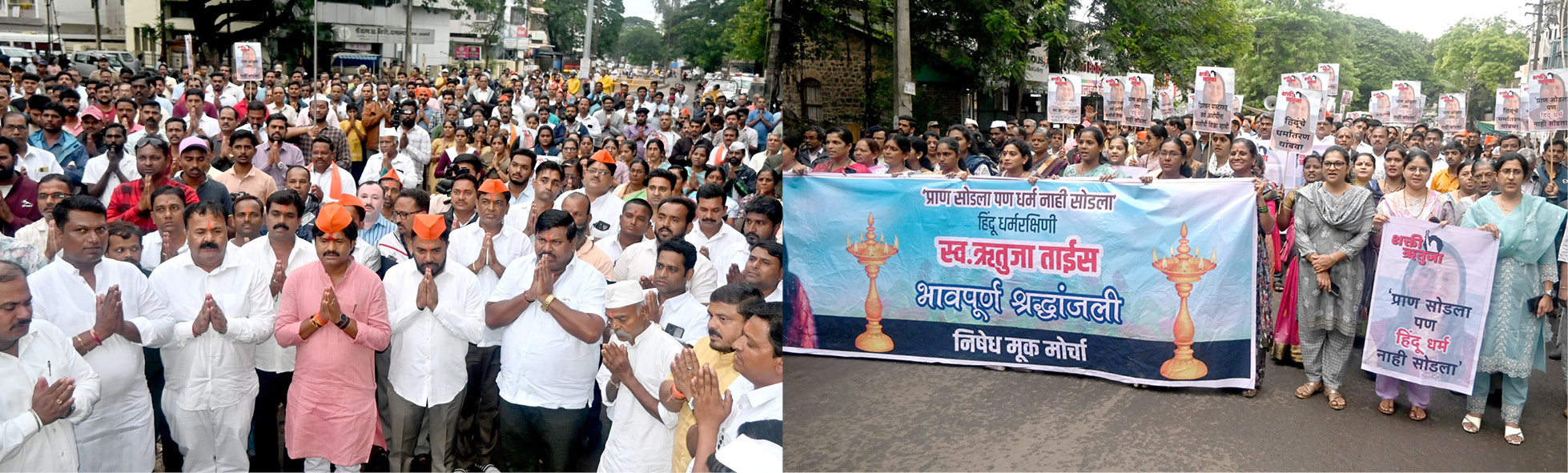 ऋतुजाचा विवाह लावणार्या पादरीबरोबरच मध्यस्थी करणार्या कोल्हापुर महसुल खात्यात काम करणार्या कोळी नामक नायब तहसिलदारावरही कारवाईचीही मागणी त्यांनी केली. अनेक मुद्यांना हात घालत आपले झंजावती भाषण करून उपस्थितांना खिळवुन ठेवले. दरम्यान ५ महिलांनी प्रांताधिकारी दिपक शिंदे यांची भेट घेऊन निवेदन सादर केले. यावेळी शहर आणि परिसरातील हिंदु महिला बांधव, नागरीक मोठ्या संख्येने उपस्थित होते. तर प्रांताधिकारी कार्यालय परिसरात चोख पोलीस बंदोबस्त तैनात करण्यात आला होता.