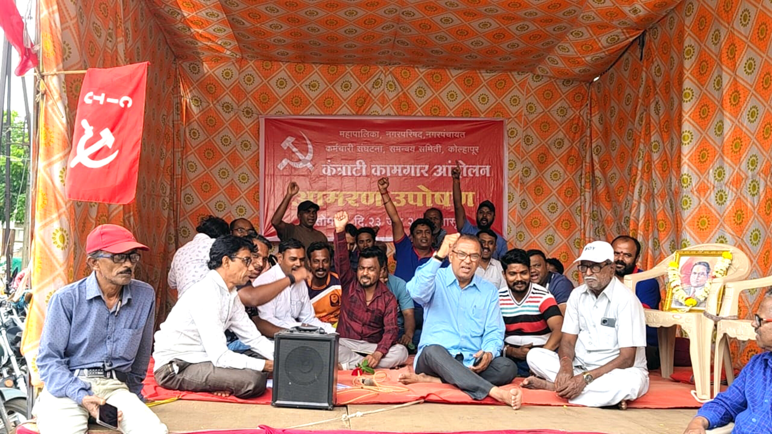 इचलकरंजी शहरात घंटागाडीच्या माध्यमातून घरोघरी जावून कचरा संकलीत केला जातो. एन डी के या मक्तेदार कंपनीच्या माध्यमातून हे काम केले जाते. या कंपनीने विमा योजनेचे पैसे वेतनातून कपात करण्यात आले आहे. पण त्यांना विमा योजनेचे कार्ड दिलेले नाही. पीएफ फंडाबाबत दिशाभूल केली जात आहे. त्यामुळे किमान वेतन व विमा योजनेची अंमलबजावणी करावी, अशी मागणी करीत आज सकाळपासून बेमुदत उपोषणाला सुरुवात केली आहे.
