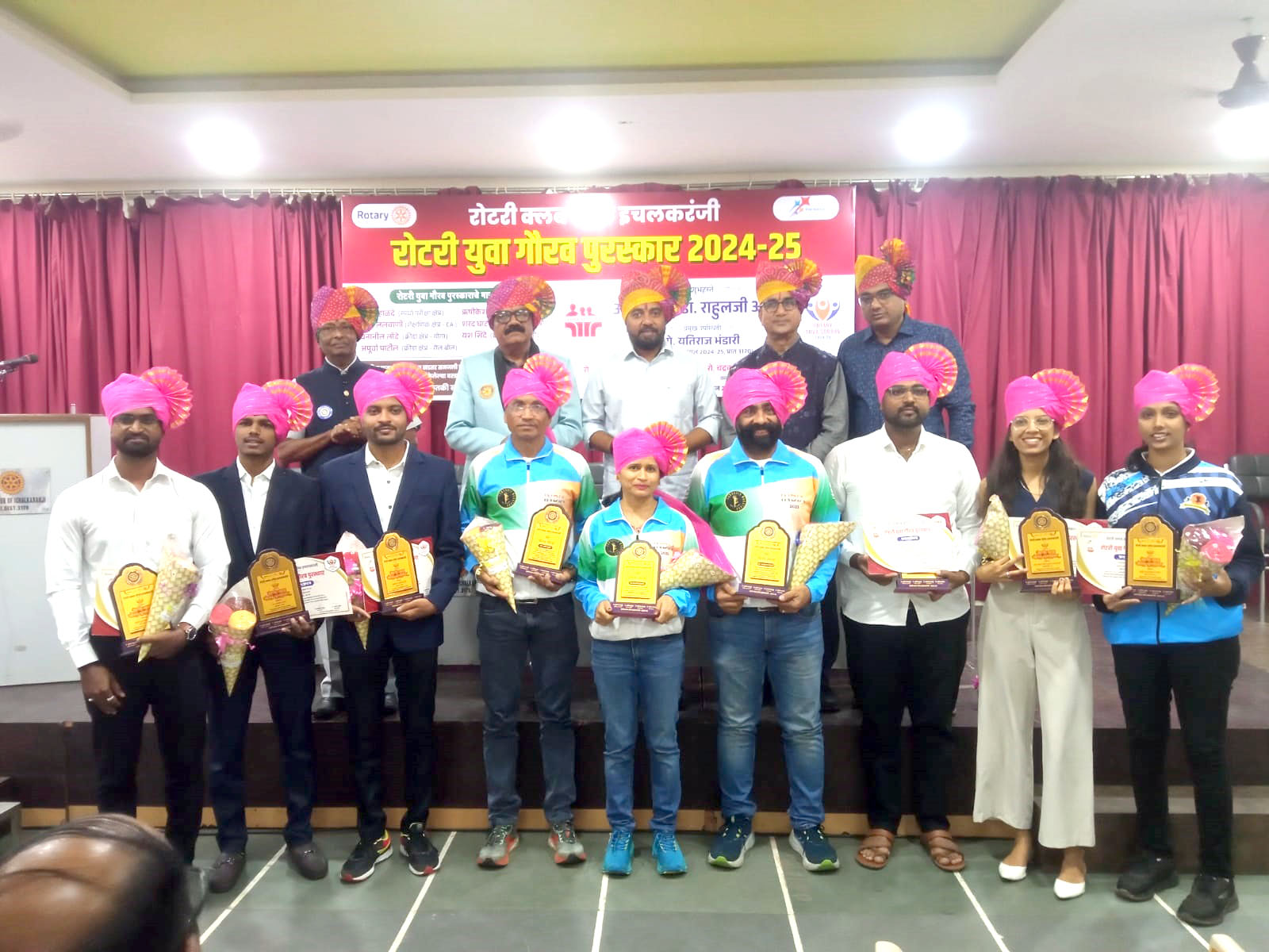 रोटरी क्लब ऑफ इचलकरंजी आयोजित ‘रोटरी युवा गौरव पुरस्कार 2024-25’ सोहळा उत्साही वातावरणात पार पडला. विविध क्षेत्रात चमकदार काम करणाऱ्या युवा गौरवमूर्तींचा गौरव मान्यवरांच्या हस्ते करण्यात आला.