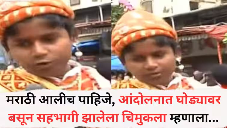 त्याचबरोबर त्याच्यासोबत माध्यमांनी संवाद साधला त्यावेळी तो म्हणाला, महाराष्ट्राक राहणाऱ्याला मराठी आलीच पाहिजे. महाराष्ट्रात राहून मराठी येत नाही त्यामुळं हा मोर्चा सुरू आहे. ओंकार भारत करचे (वय वर्षे 11) असं या चिमुकल्याचं नाव आहे. या आंदोलनामध्ये तो घोड्यावरती बसून सहभागी झाला होता. या ठिकाणी पोलिसांनी आंदोलकाना आणि कार्यकर्त्यांना ताब्यात घेण्यास सुरूवात केली, त्यावेळी त्या लहान मुलाला घोड्यासह पोलिसांनी बाजूला नेलं. या ठिकाणी मोठ्या प्रमाणावर गोंधळ उडाला असून महत्त्वाचे चौक, रेल्वे स्थानकं आणि जंक्शनच्या परिसरात बंदोबस्त नेमण्यात आला आहे.