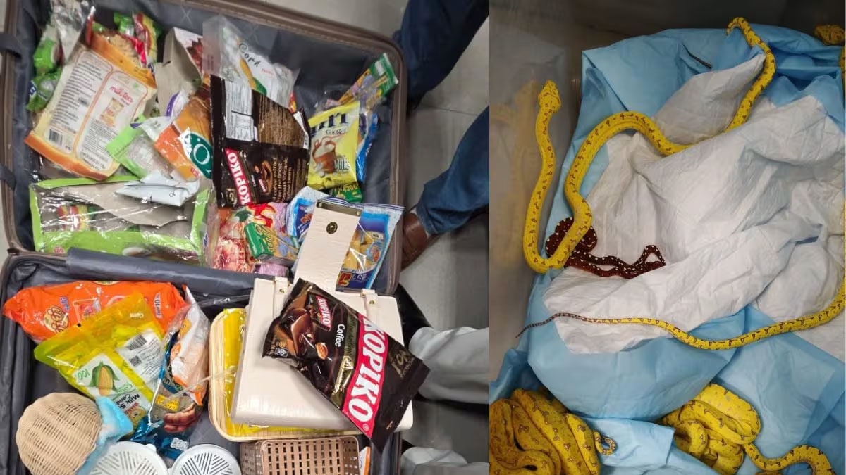 पुणे आंतरराष्ट्रीय विमानतळावर एक धक्कादायक घटना उघडकीस आली आहे. इथं पोलिसांना दोन विदेश नागरिकांवर संशय आल्यानंतर पोलिसांनी आरोपींच्या बॅगांची झडती घेतली. यावेळी त्यांच्या बॅगमध्ये पोलिसांना नको तेच सापडलं आहे. संबंधित प्रकार पाहून पोलीस हादरून गेले. बॅग तपासले असता बॅगेत ठेवलेल्या चॉकलेट बॉक्समध्ये चक्क दुमिर्ळ साप, ससे आणि पोपट आढळले आहेत.