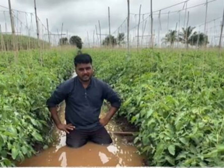 काल (6 ऑगस्ट) झालेल्या मुसळधार पावसामुळे सोलापूर जिल्ह्यात शेती पिकांचे मोठ्या प्रमाणावर नुकसान झाले आहे. लखन माने यांच्या 2 एकरवरील टोमॅटो पिकाच्या बागेत पाणी साचले आहे. अंदाजे 10 ते 12 लाख रुपयांचे नुकसान होण्याची शक्यता त्यांनी व्यक्त केली आहे. या परिस्थितीत हतबल झालेल्या माने यांनी शासनाकडे आपली व्यथा मांडली आहे.
