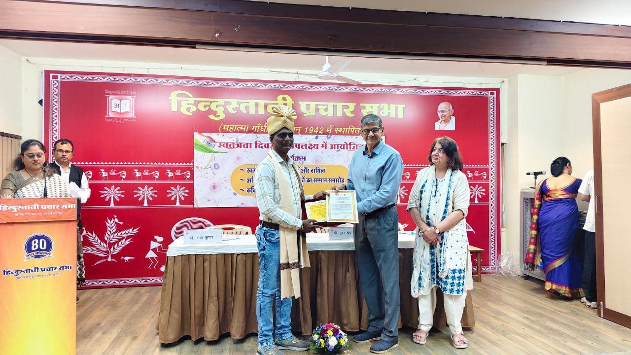 हिंदुस्तानी प्रचार सभेचे माननीय डॉ. नीता कुमारी, माननीय श्री राकेश कुमार त्रिपाठी तसेच इतर मान्यवरांच्या हस्ते त्यांचा गौरव करण्यात आला.