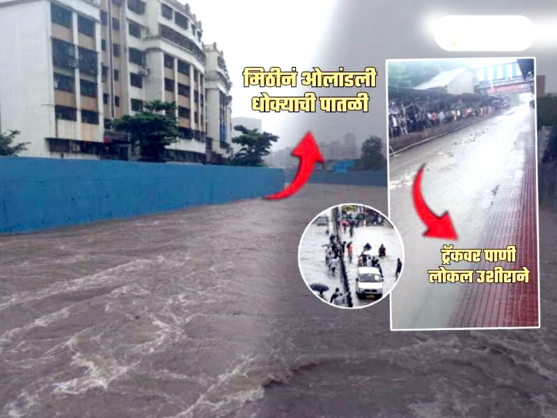 मुंबईमध्ये पावसाने जोर धरला असून पहाटेपासूनच देशाच्या आर्थिक राजधानीला पावसाने झोडपून काढलं आहे. सकाळपासून मुंबईला सूर्याचंही दर्शन झालेलं नसून जोरदार पावसामुळे लोकल ट्रेनच्या वाहतुकीलाही मोठा फटका बसला आहे. असं असतानाच आता मुंबईतून वाहणाऱ्या सर्वात महत्त्वाच्या नद्यांपैकी एक असलेल्या मिठी नदीने धोक्याची पातळी ओलांडली आहे. तर दुसरीकडे भांडूप आणि विक्रोळीमध्ये दरड कोसळण्याची शक्यता लक्षात घेत महापालिकेने स्थानिकांना सुरक्षित स्थळी हलवलं आहे.