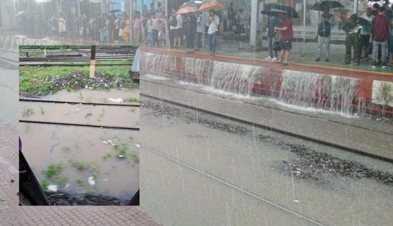 मुसळधार पावसामुळं अप आणि डाऊन दोन्ही मार्गावरील रेल्वे वाहतूक अनिश्चित काळासाठी वीस ते पंचवीस मिनिटं उशिराने सुरू आहे.