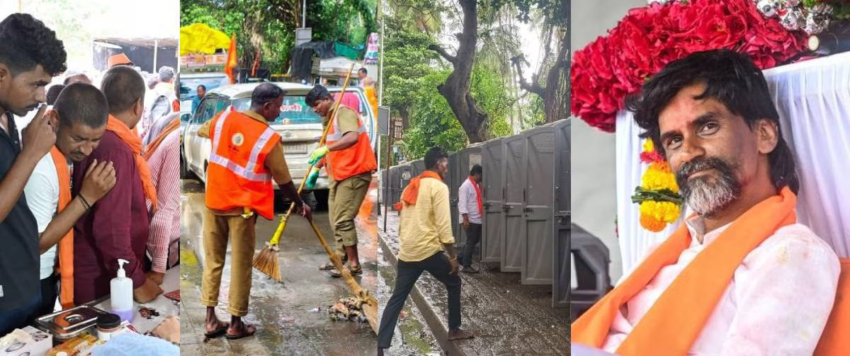 आझाद मैदान येथे सुरू असलेल्या आंदोलनाच्या पार्श्वभूमीवर, आंदोलनकर्त्या बांधवांना विविध सेवा-सुविधा पुरविण्यासाठी बृहन्मुंबई महानगरपालिकेच्या पाणीपुरवठा, स्वच्छता, अग्निशमन दल, वैद्यकीय सुविधा आदी विभागांचे मनुष्यबळ मोठ्या प्रमाणात अविरतपणे कार्यरत आहे. स्वच्छतेसाठी महानगरपालिकेच्या प्रत्येक विभागातून किमान 30 कर्मचारी आणि पर्यवेक्षक याप्रमाणे मिळून हजाराच्या घरात आज (दिनांक 1 सप्टेंबर 2025) आझाद मैदान आणि परिसरात कर्मचारी कार्यरत आहेत.