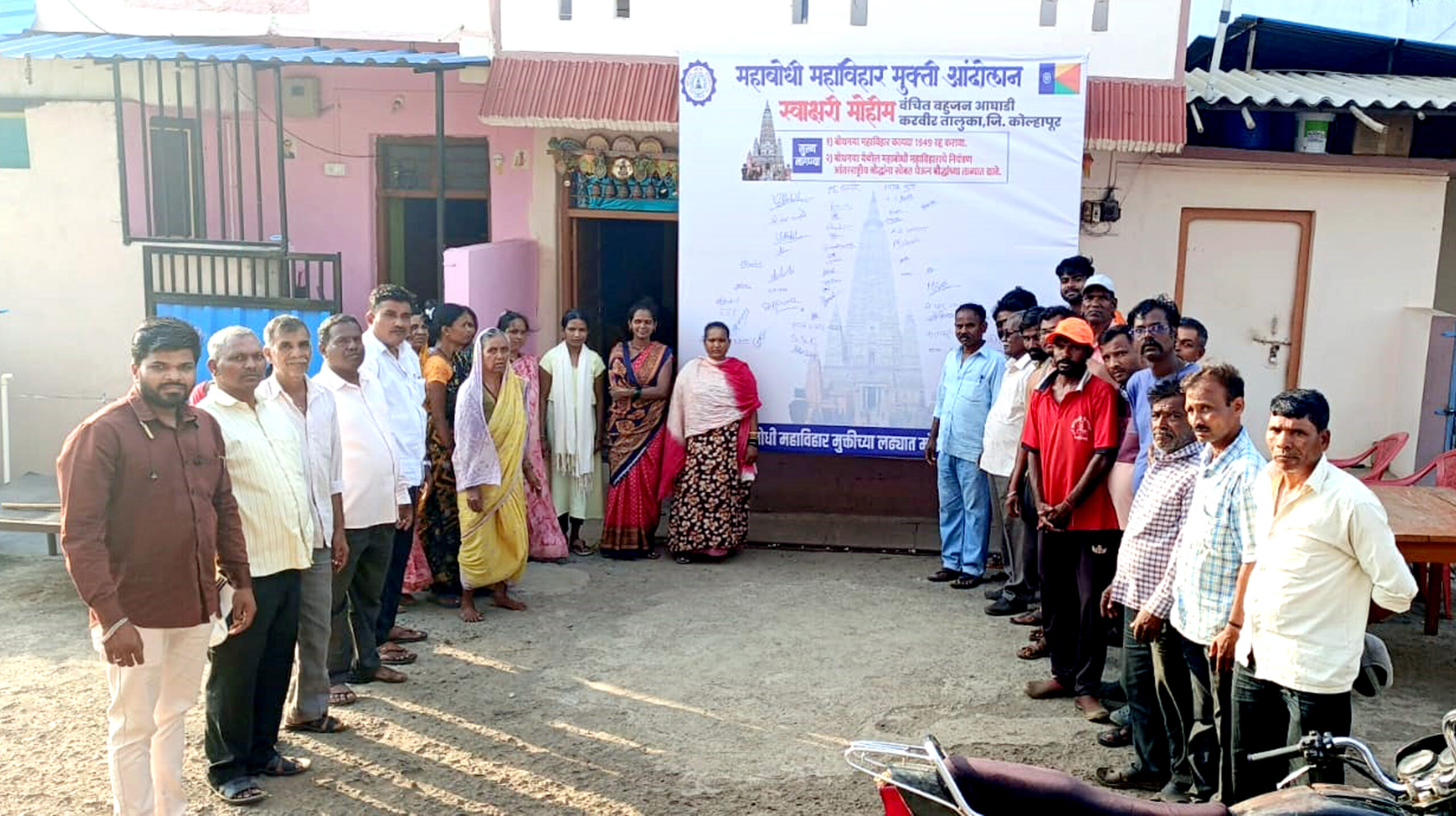 भुये, ता.करवीर येथून महाबोधी महाविहार मुक्ती आंदोलन साक्षरी मोहीमेस सुरुवात करण्यात आली. यावेळी कार्यक्रमाचे अध्यक्ष भिमराव माने होते. बोधगया मंदिर अधिनियम 1948 कायदा रद्द करण्याची मागणी, महोबाधी महाविहार बुद्धांच्या ताब्यात देण्याची मागणी, महाबोधी महाविहार ब्राह्मण वाद्यांच्या ताब्यातून मुक्त करण्यासाठी राज्यव्यापी आंदोलन या प्रमुख मागणीसाठी आंदोलन व स्वाक्षरी मोहीम सुरू केली आहे, असे उदगार भिमराव गोंधळी वंचित बहुजन आघाडी करवीर तालुका अध्यक्ष यांनी व्यक्त केले.