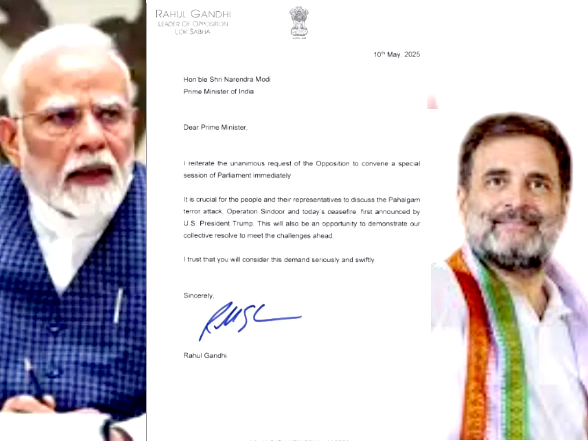 राहुल गांधी या पत्रात म्हणाले, संसदेचे विशेष अधिवेशन तात्काळ बोलावण्याच्या विरोधी पक्षांच्या एकमताने केलेल्या विनंतीचा मी पुनरुच्चार करतो. पहलगाम दहशतवादी हल्ला, ऑपरेशन सिंदूर आणि अमेरिकेचे अध्यक्ष ट्रम्प यांनी पहिल्यांदा जाहीर केलेल्या आजच्या युद्धबंदीवर चर्चा करणे अत्यंत महत्त्वाचे आहे. पुढील आव्हानांना तोंड देण्यासाठी आपला सामूहिक निर्धार दाखविण्याची ही एक संधी असेल. मला विश्वास आहे की तुम्ही या मागणीचा गांभीर्याने आणि जलद गतीने विचार कराल.